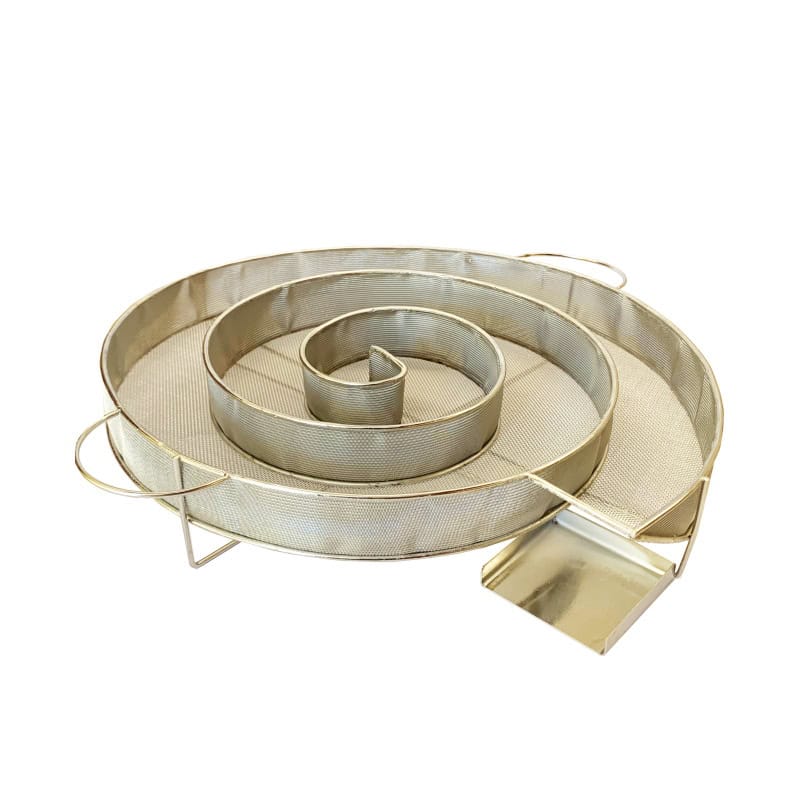 De koude rookgenerator is een spiraalvormig bakje met fijnmazige bodem en wanden. De voorzijde loopt wat schuin omhoog, zodat hieronder b.v. een waxinelichtje gezet kan worden.