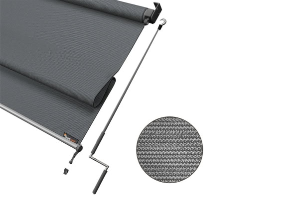 Monteer het Cool Grey rolgordijn eenvoudig aan een pergola, overkapping of veranda. De rolgordijnen zijn handbediend, doormiddel van een draaistang. Bij de montage bepaald uzelf of deze links of rechts komt. De montage is relatief eenvoudig en alle montage materialen worden meegeleverd.