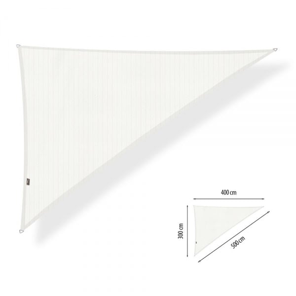 Het schaduwdoek heeft een 90º hoek. De afmeting van de buitenkanten is 3×4 meter. De afmeting van de schuine kant is 5 meter.