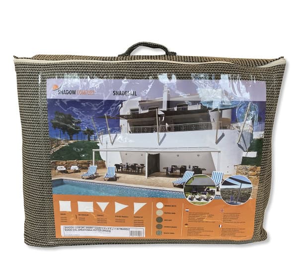 Het doek van Shadow Comfort® is voorzien van een dubbel gestikte randafwerking met verstevigingsband. Op de hoeken zitten RVS triangel ogen, voor het strak opspannen van het doek.