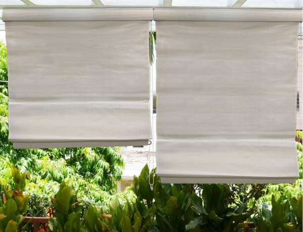 De bediening is met een rolketting. Je kunt deze zowel links als rechts plaatsen. Het doek zelf heeft een ingenaaide balein, waardoor er een natuurlijke vouw ontstaat.